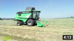 Deutz Fahr C7206 TS combine. Transport van het zaad met Valtra N147 met Jako Tiger 180 kipper.
